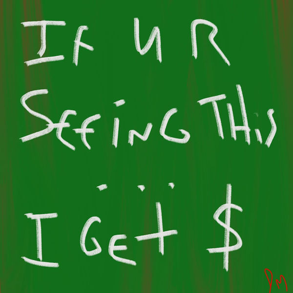 Take for example “I Get $”, the 30x30” canvas (all the paintings are squares, like an album cover) he painted the entirety of a viridian green and scribbled on top, using an oil stick, “If U R seeing this...I get money.” Or the painting “Trap {star}” where Mr. Milton has painted a crude star in the most obnoxious yellow next to a “t” that also resembles a cross against a dark all black background. In both these paintings he is simplifying the picture plain in order to communicate ideas that while on the surface may seem cliche, or stereotypical, if you look deeper, Milton is actually displaying his understanding of history, semiotics, language, and more importantly his audience. In “I Get $” it is a self declaration, one you may hear in any standard rap track, but in the context of the art world, not to mention the use of “U R instead of You Are, and the phrase itself being a play on on Drake’s 2015 album, “if you are reading this it’s too late,” It also brings into question class and generational divides, and provokes the question, what does a painting actually represent in the homes of the wealthy if not, “I get money.” Milton is uniting ideas and worlds that while they may appear polar opposites, hold similar values.